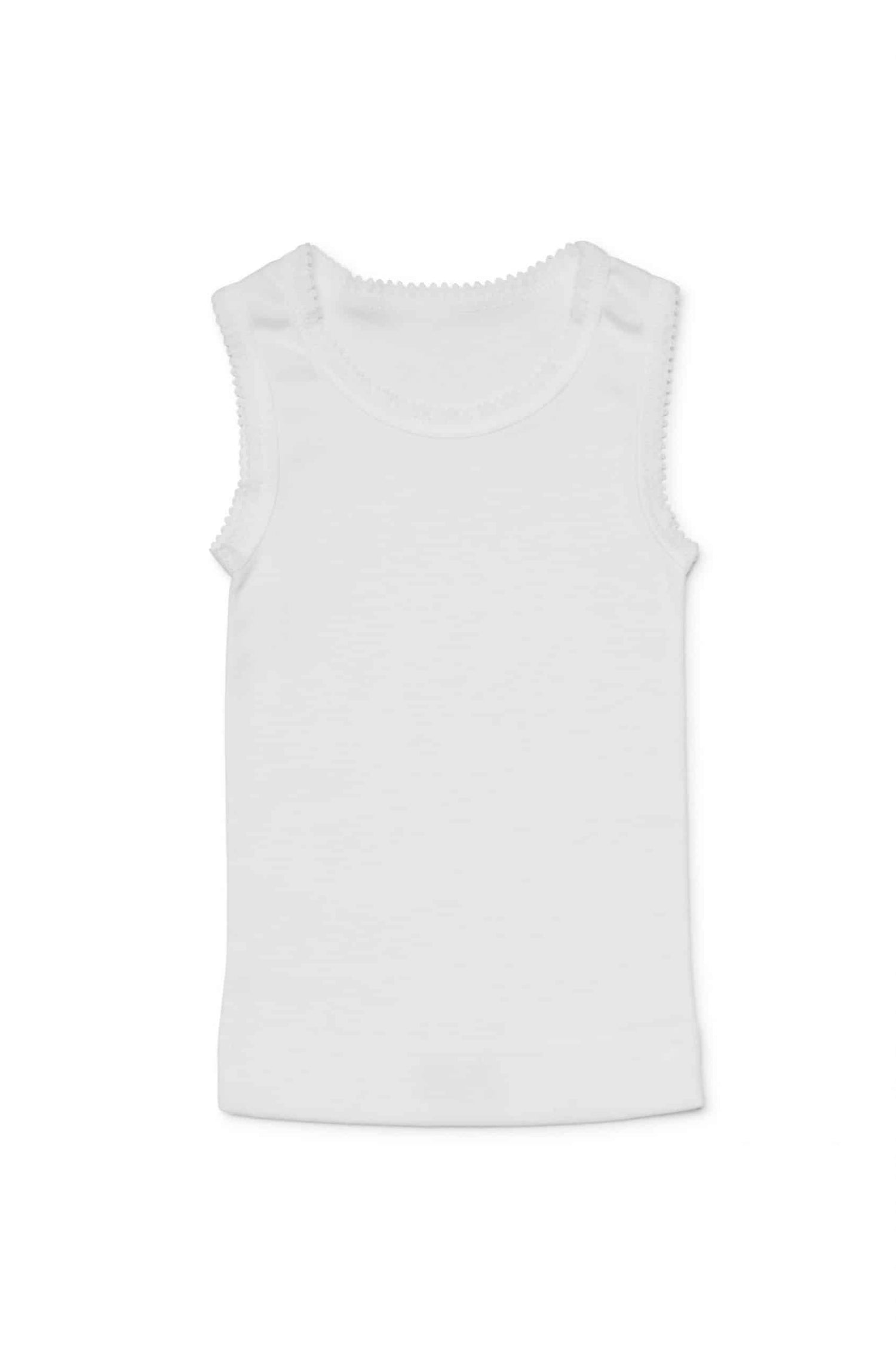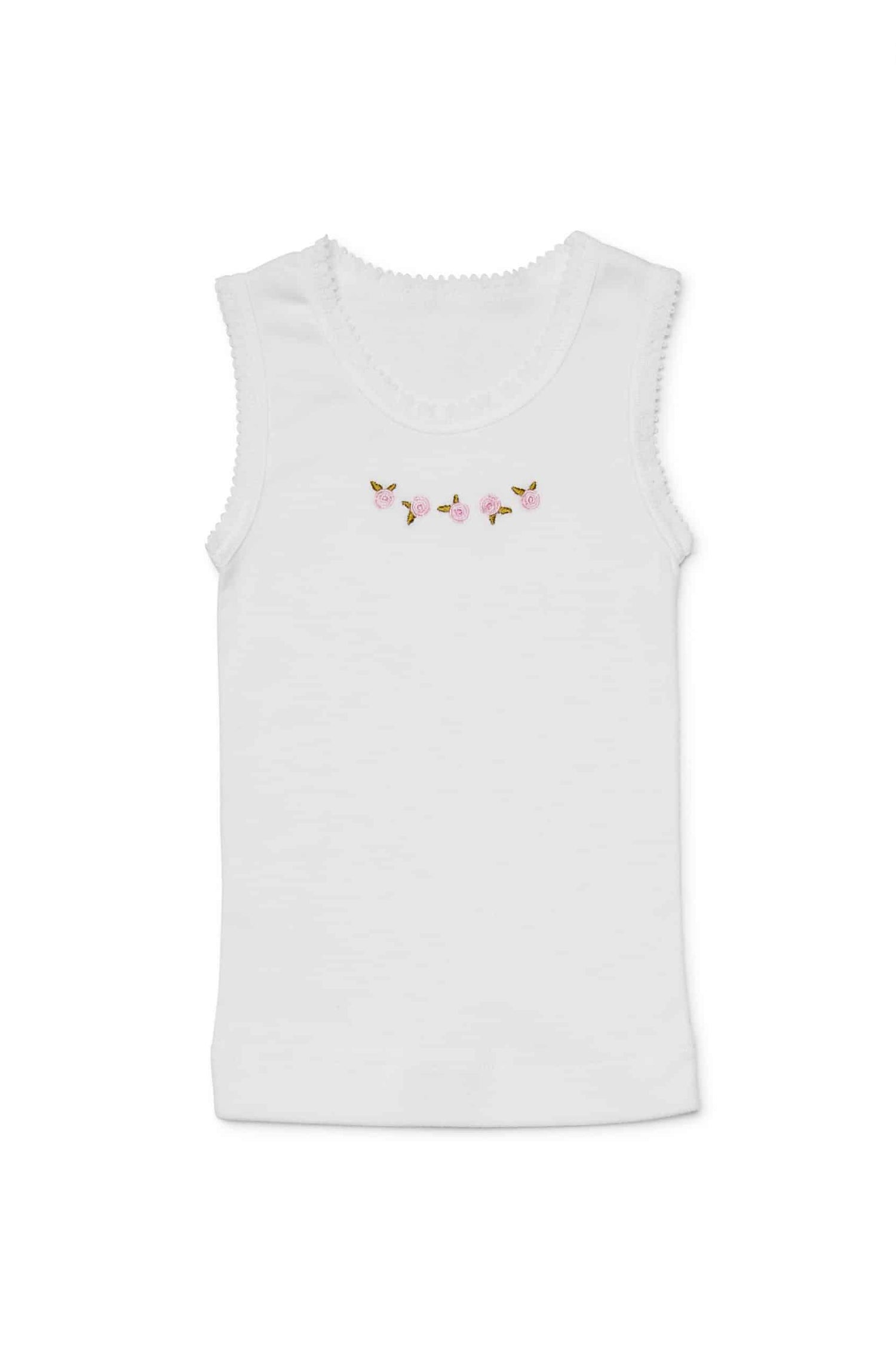 - Includes: 1 x pink singlet, 1 x white singlet, 1 x white singlet with floral embroidery