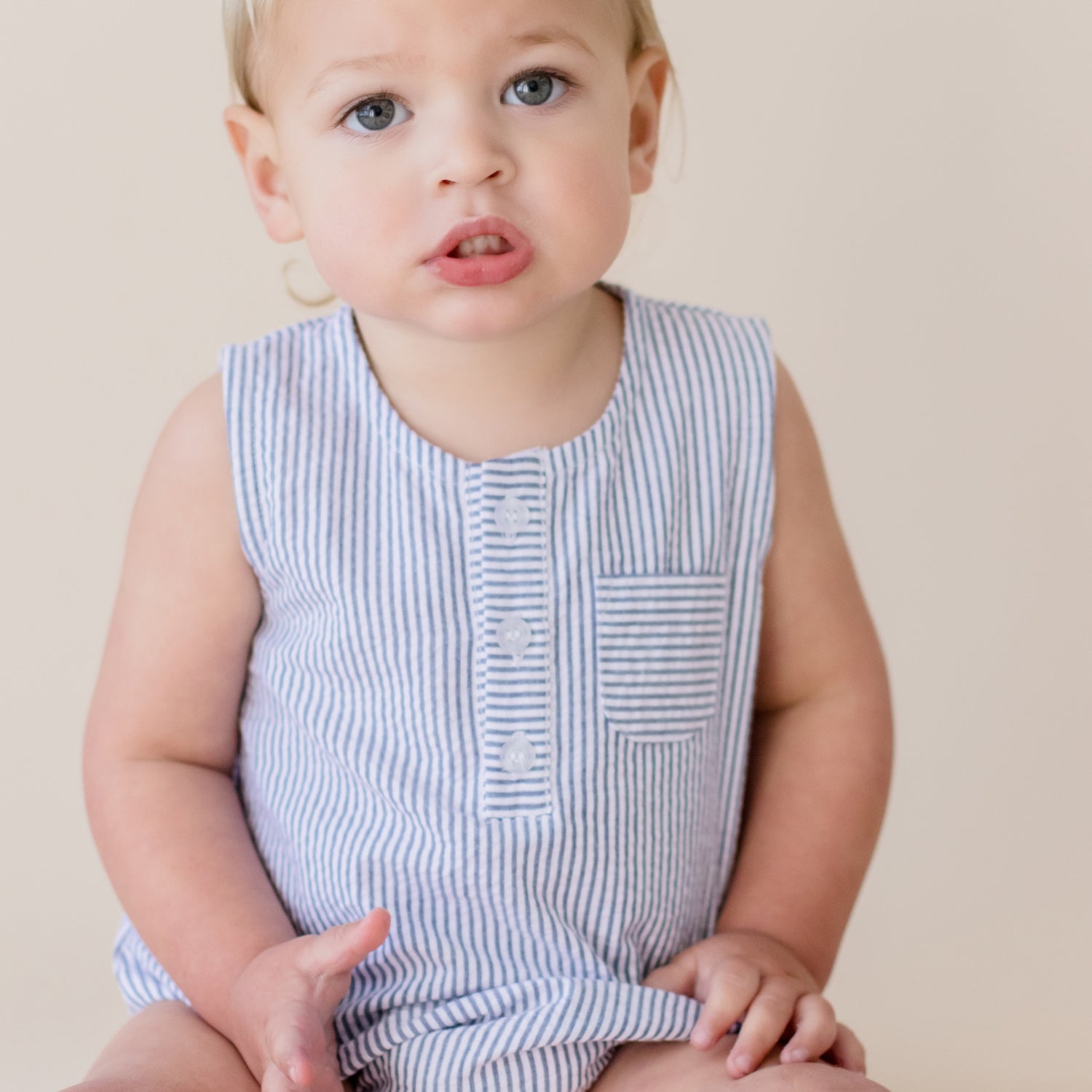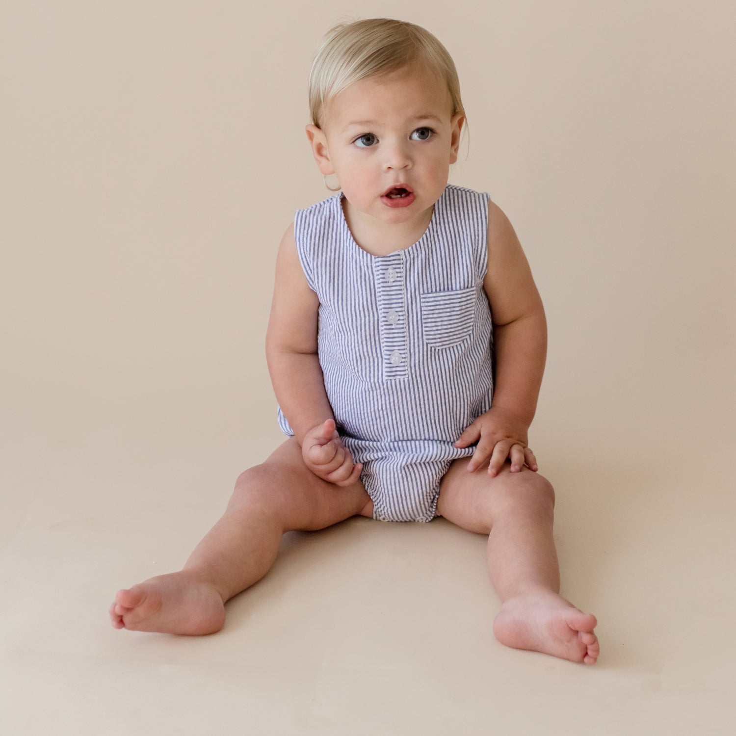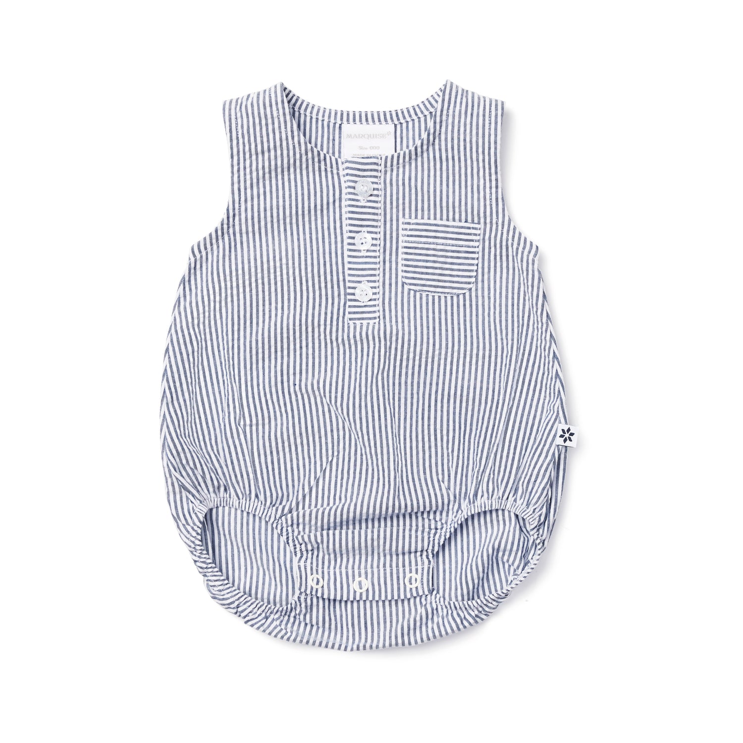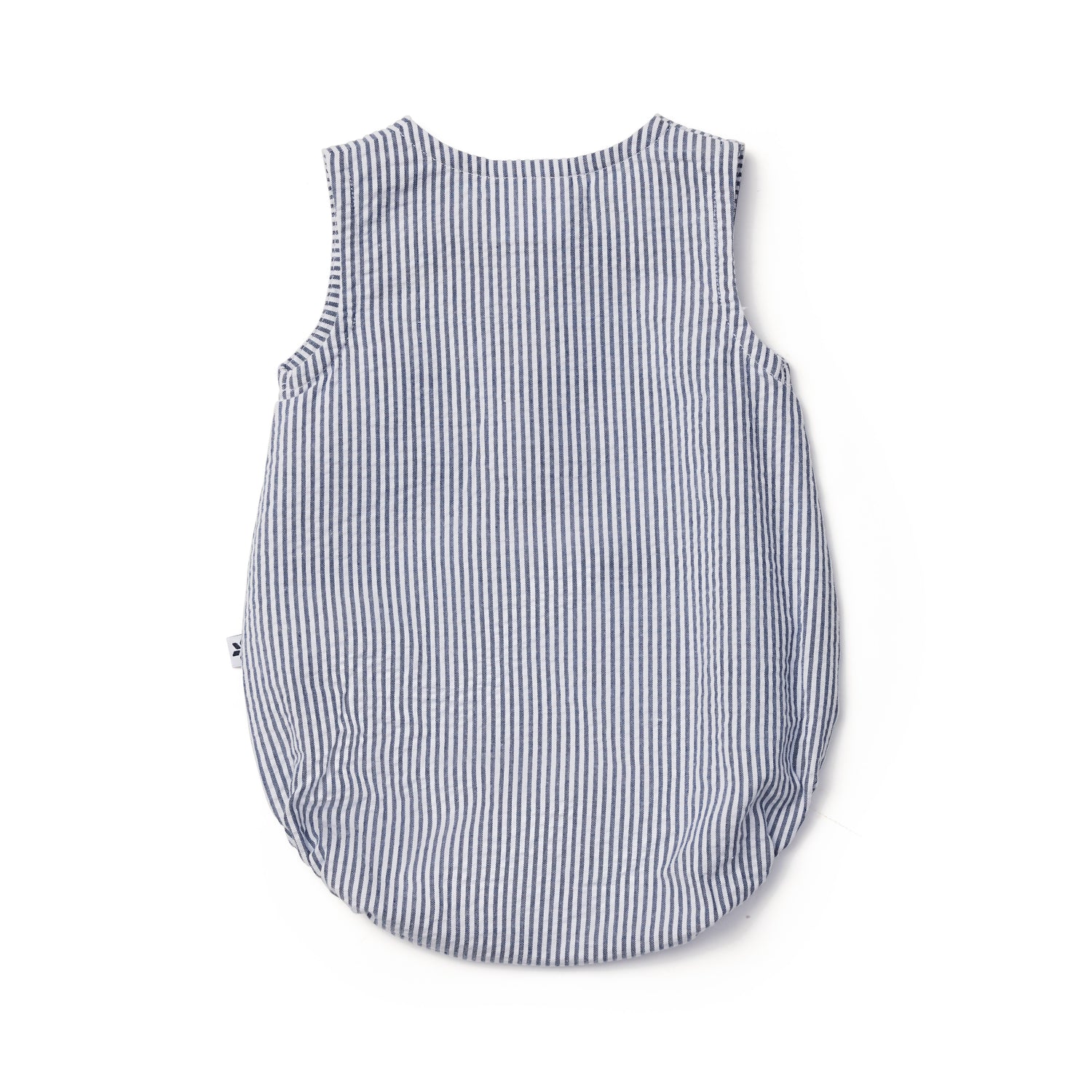 Timeless and lightweight, the Best Friends Woven Romper is a summer essential for your little one. Made from 100% cotton, this sleeveless romper features a soft navy stripe in breathable seersucker fabric that keeps baby cool and comfy all day long. Designed with handy press studs for quick and easy changes, it’s perfect for sunny outings, special occasions, or simply enjoying the warm weather in style.