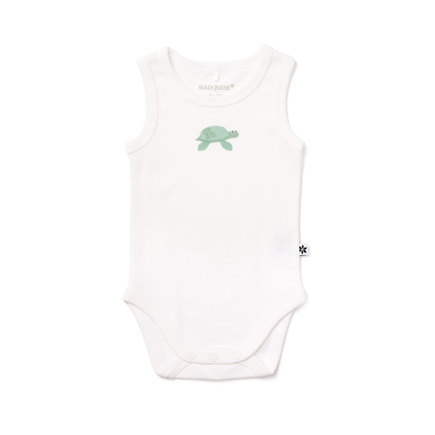Inspired by coastal adventures, the By The Sea Sleeveless Bodysuit 2 Pack includes a white bodysuit with a friendly turtle and a blue wave print bodysuit with sailing boats. The sleeveless design keeps your little one cool and comfy, while soft 100% cotton is gentle on delicate skin. Finished with press studs for fuss-free changes.