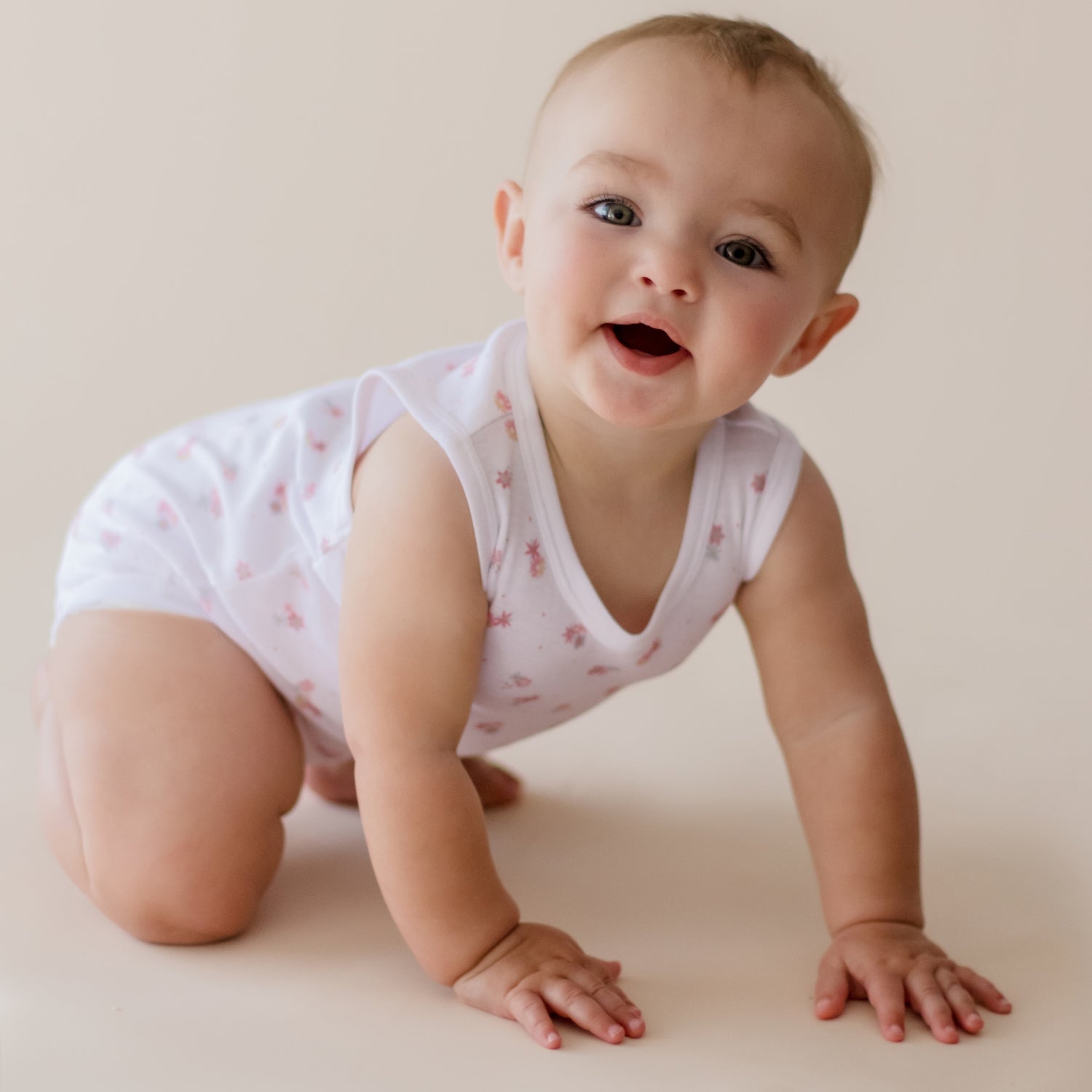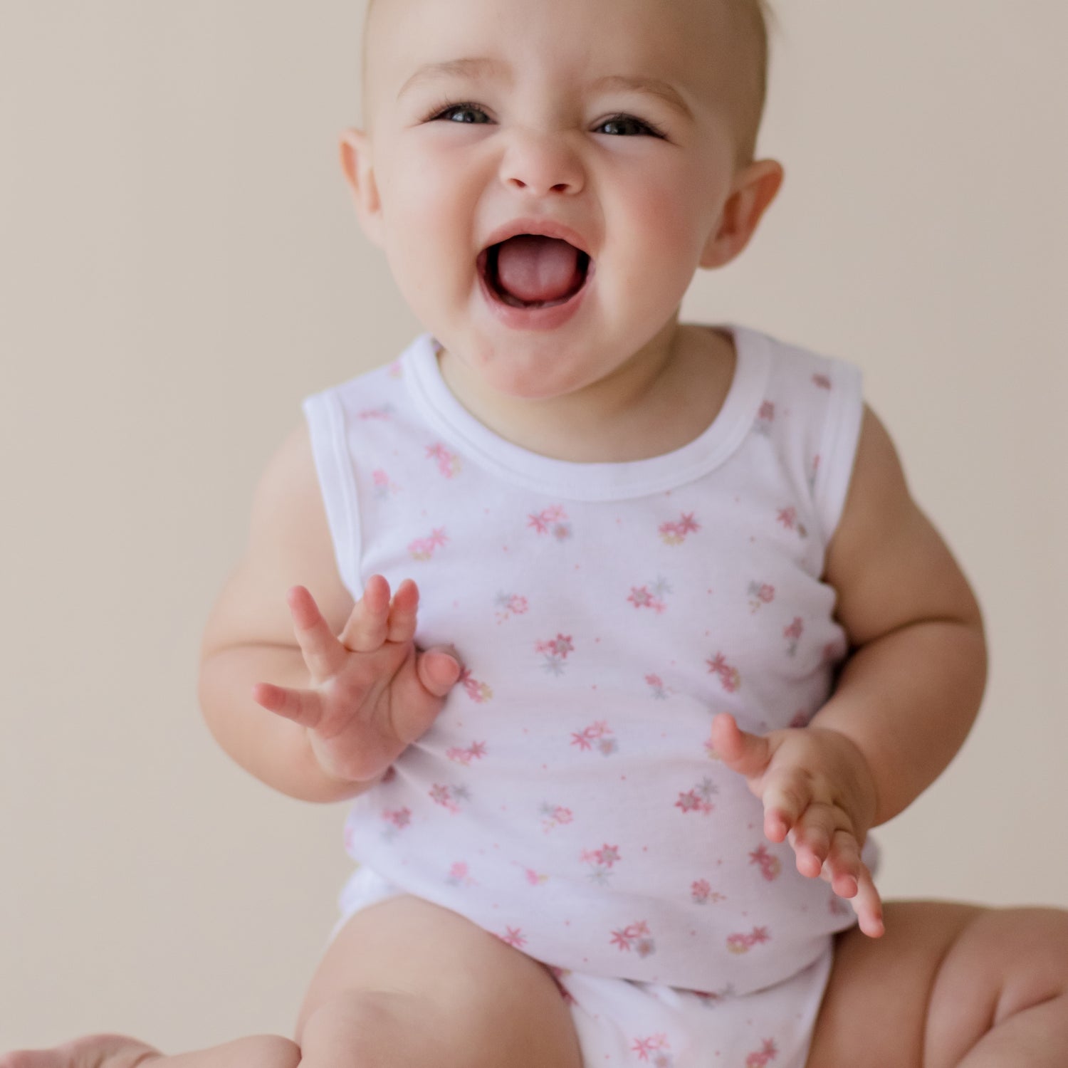 Our Floral Sleeveless Bodysuit 2 Pack features our best-selling sleeveless bodysuits, a must-have for layering to keep little torsos comfortable. Includes 2 sleeveless bodysuits with snap buttons at leg for easy dressing and nappy changes. Made from the softest 100% quality cotton, making them comfortable and breathable on delicate skin.