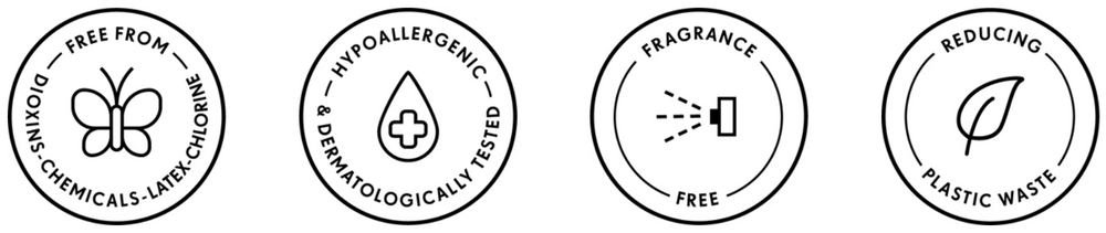 Independently dermatologically tested by Dermatest and completely free from all chemicals including: chlorine, latex and dioxins.