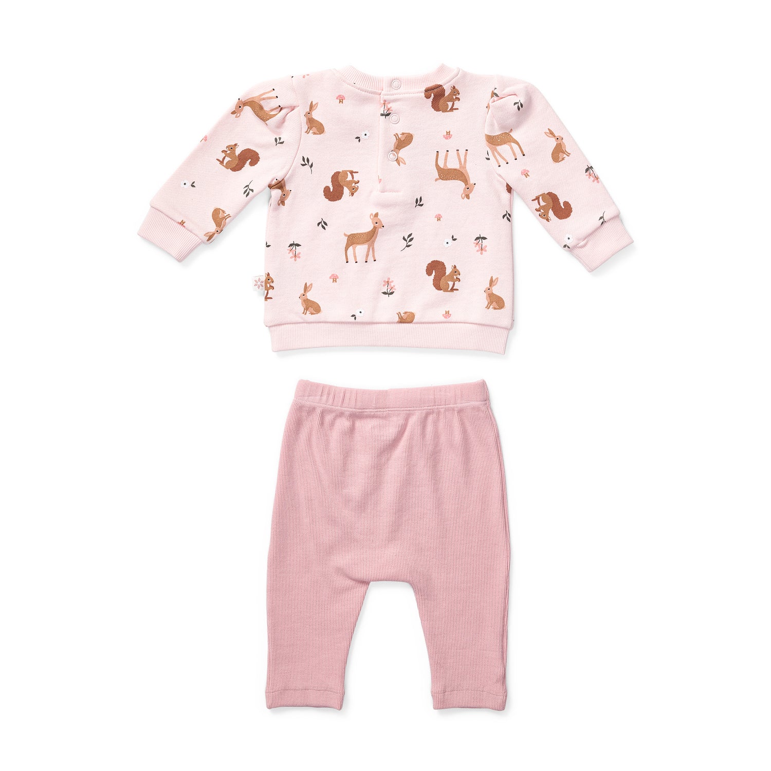 The Meadows Fleece Jumper & Rib Legging Set is the perfect winter outfit to keep little girls looking stylish and feeling warm. Featuring a fleece lined track jumper with forest friend print and rib footless leggings, this set offers unbeatable Marquise value and quality.
