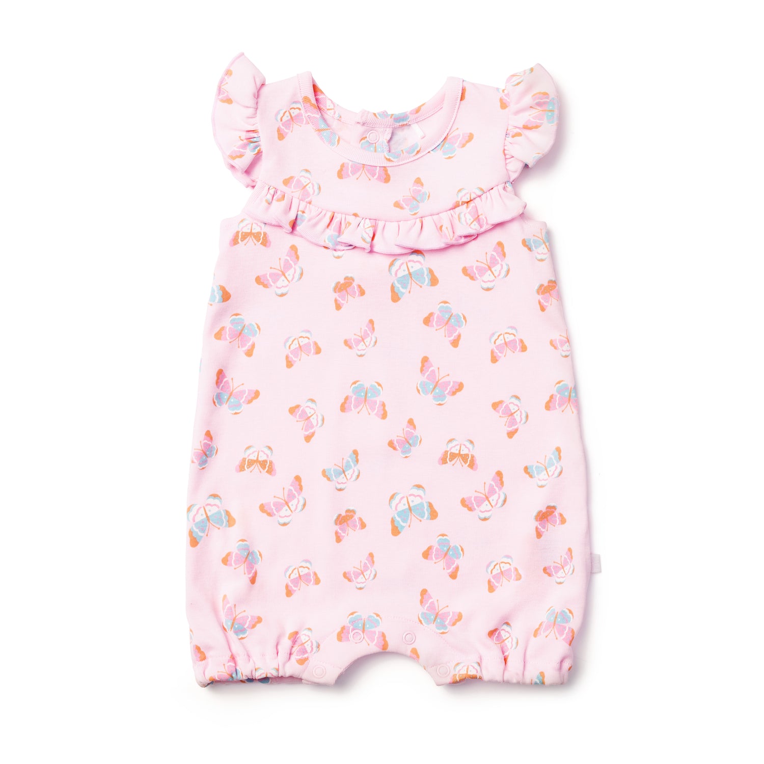 The Pink Butterfly Frill Romper is made for carefree summer days filled with play and wonder. Featuring an all-over butterfly print and flutter sleeves, this sweet romper brings a touch of whimsy to your little one’s wardrobe. Made from 100% cotton with easy press studs for breezy outfit changes.