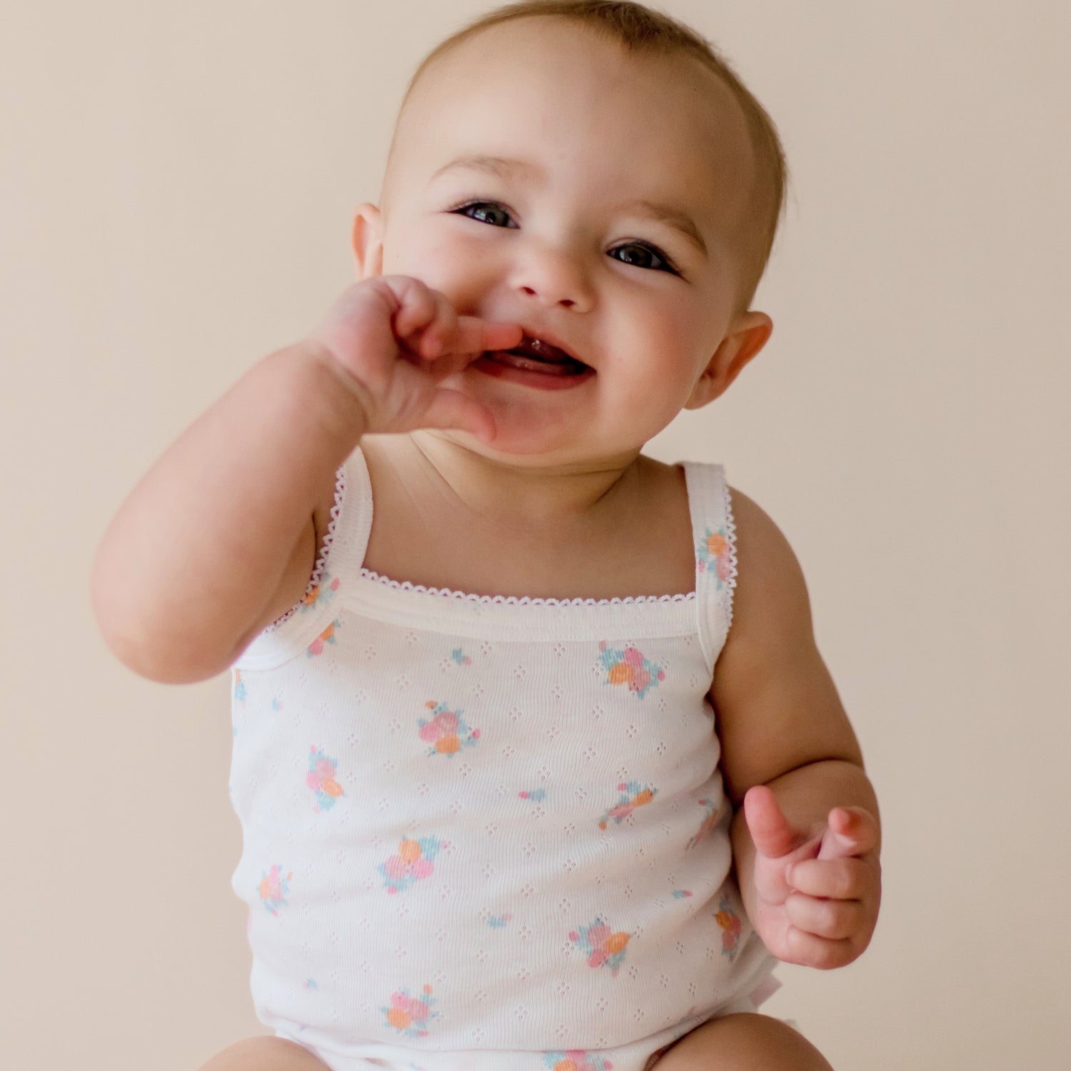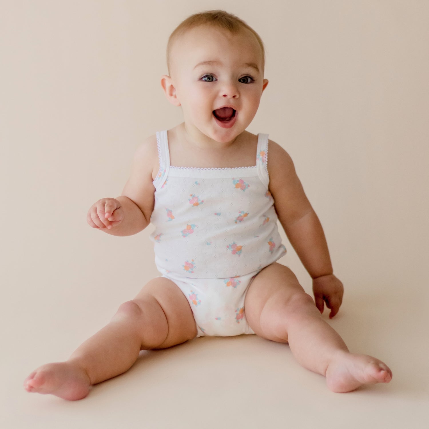 - 1 x white pointelle bodysuit with floral pattern