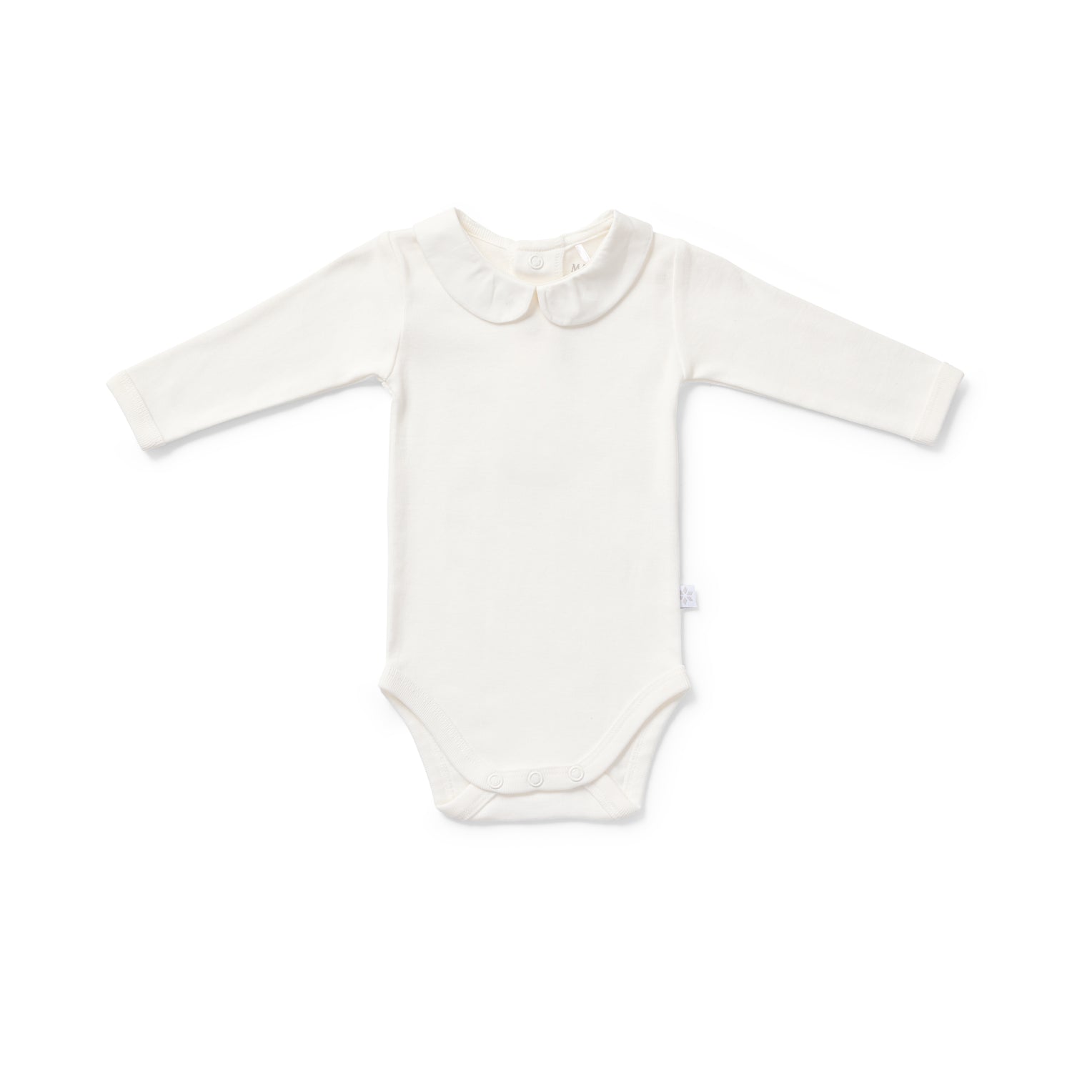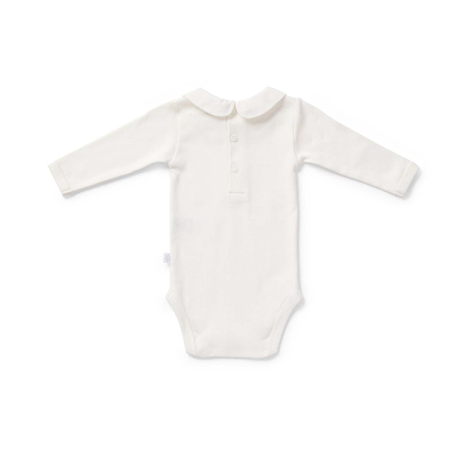 This classic woven collar bodysuit has returned - the perfect finishing piece for a special outfit. In our traditional vanilla colour, this style features stud openings at the back and legs for easy dressing and nappy changes and is made from 100% soft cotton.